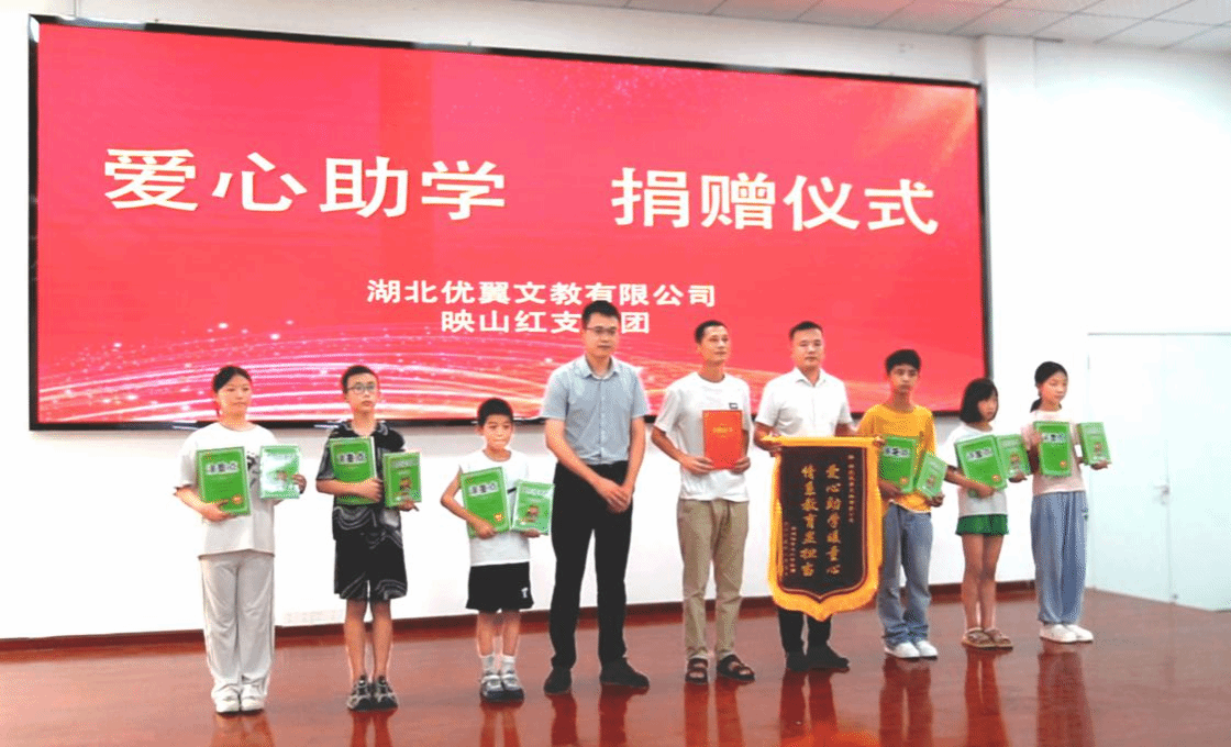 活动上还有一个特殊而温暖的环节——湖北优翼文教有限公司向黄站镇中心小学捐赠优质图书。湖北优翼文教有限公司副总经理王浩表示:“让书香代替我们留下,继续陪伴孩子们远航。”黄站镇中心小学校长刘权回赠锦旗,表达感谢。此次捐书行动不仅为孩子们送来了知识的滋养,更生动诠释了“书香传情”的深刻内涵,为城乡教育架起了一座温暖的爱心桥梁。