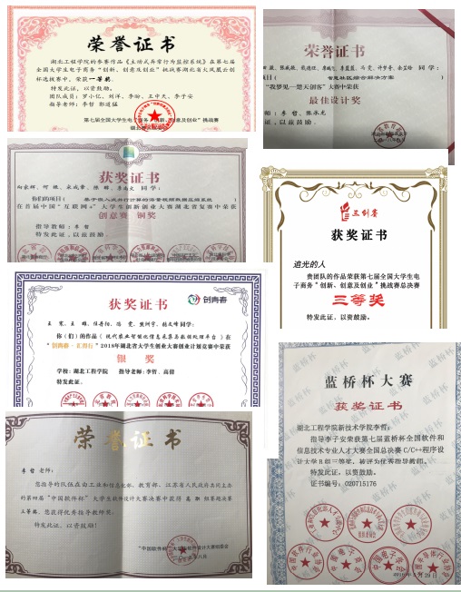 “缔造联盟”团队还十分注重培养学生的竞赛能力。团队学生在各类比赛中过关斩将,在团队指导教师带领下,获得2015年“中国软件杯”软件设计大赛全国三等奖;获得“2015、2016、2017、2018年蓝桥杯全国软件和信息技术专业人才大赛”C语言组、JAVA组全国三等奖,省一等奖,省二等奖;获得“2015、2016、2017湖北省‘互联网+’创新创业大赛”银奖、铜奖;获得2018年“创青春挑战杯”大学生创新创业大赛银奖等。
